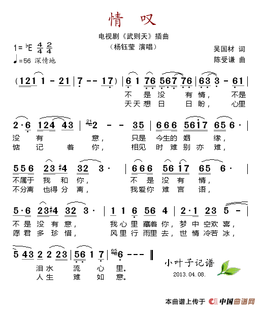关于《情叹(电视剧《武则天》插曲)》曲谱的评论
