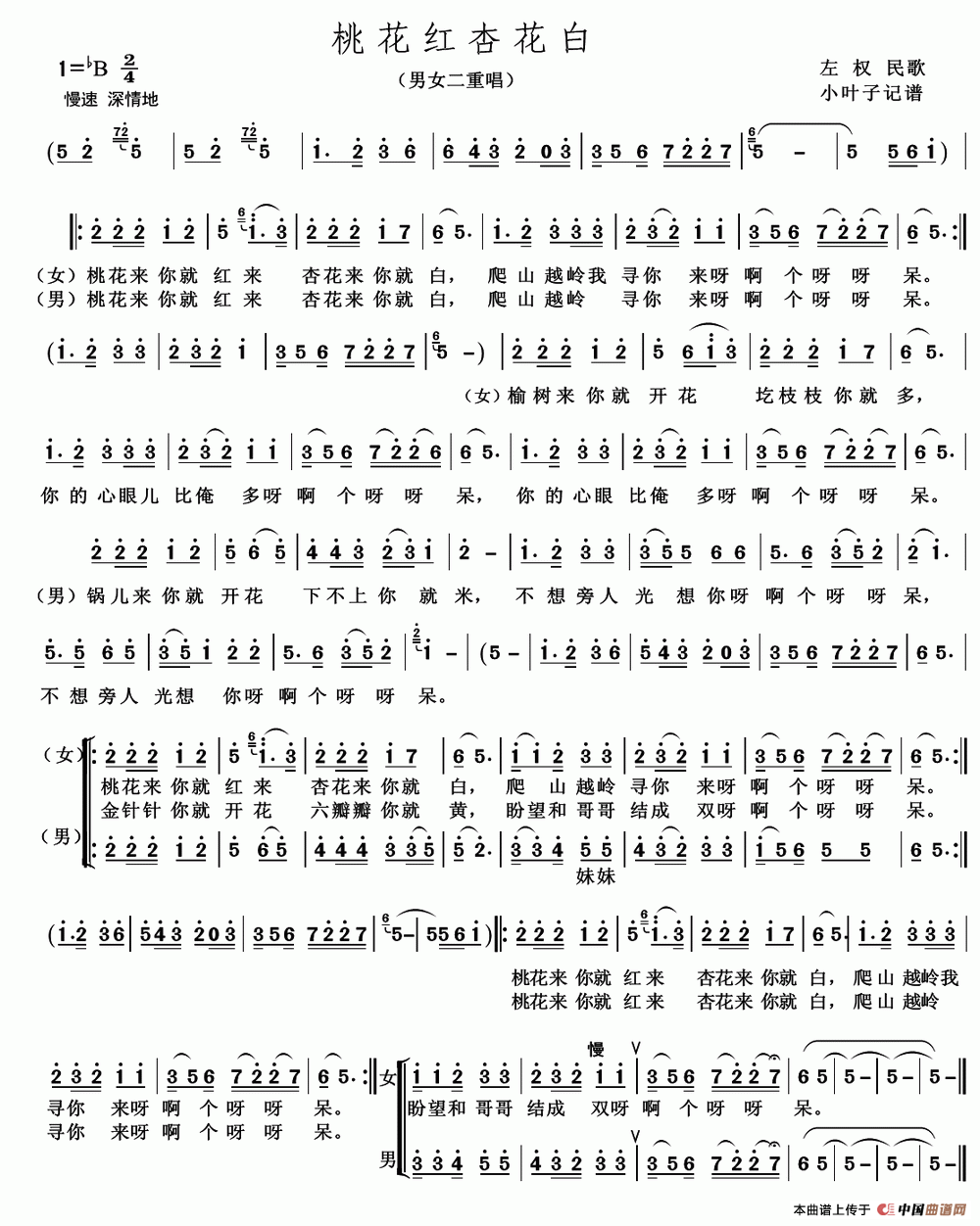 桃花红杏花白(左权民歌、男女声二重唱)