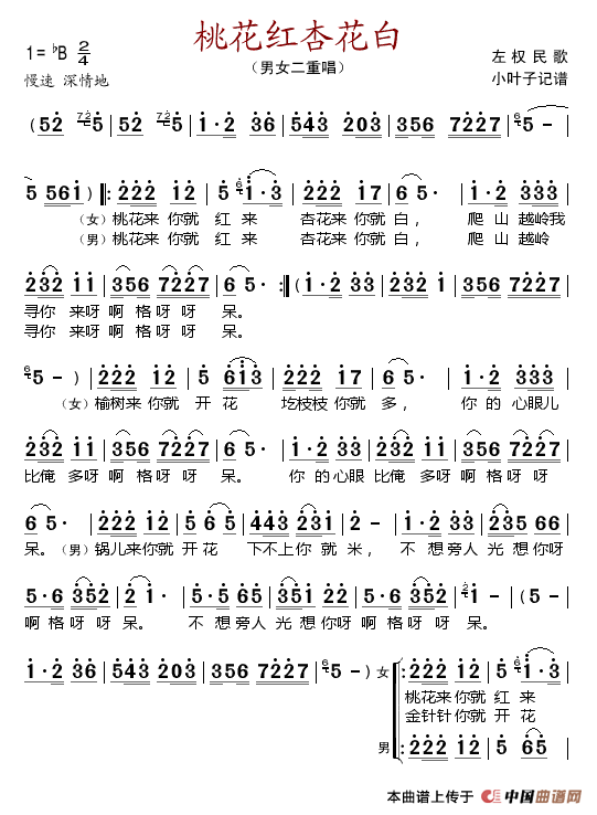关于《桃花红杏花白》曲谱的评论