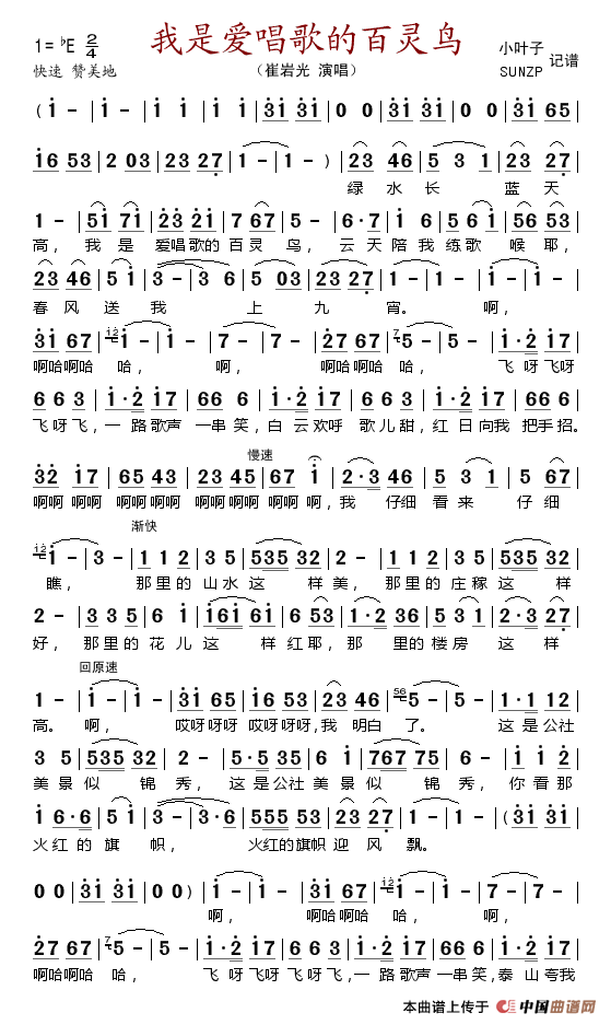 关于《我是爱唱歌的百灵鸟》曲谱的评论