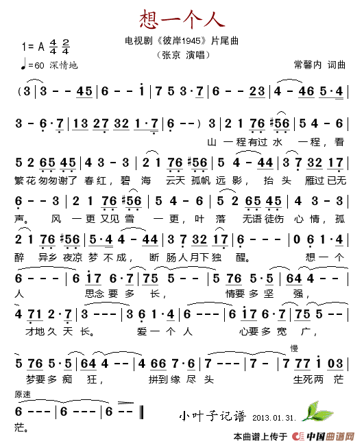 关于《想一个人(电视剧《彼岸1945》片尾曲)》曲谱的评论
