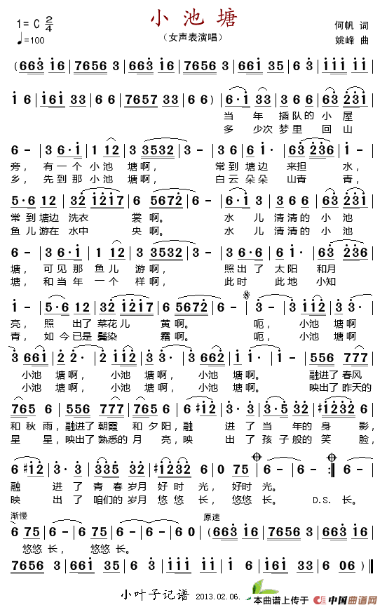 关于《小池塘》曲谱的评论