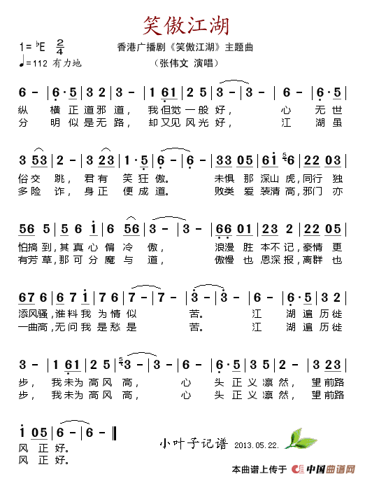 关于《笑傲江湖(香港广播剧《笑傲江湖》主题曲)》曲谱的评论