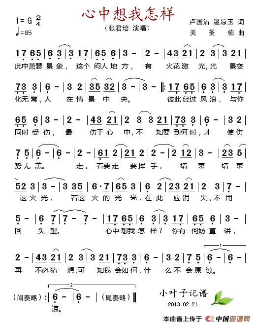 演唱(奏):张君陪 来源:小叶子记谱.3 上传:~金沙浪~