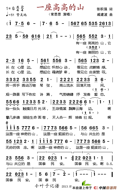 关于《一座高高的山》曲谱的评论