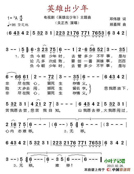 关于《英雄出少年(电视剧《英雄出少年》主题曲)》曲谱的评论