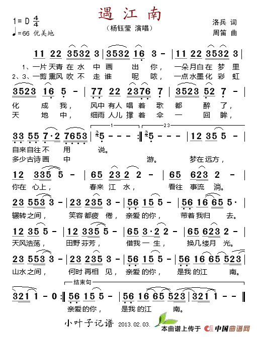 关于《遇江南》曲谱的评论