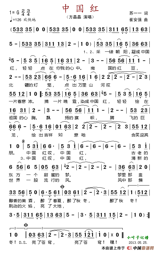 关于《中国红》曲谱的评论