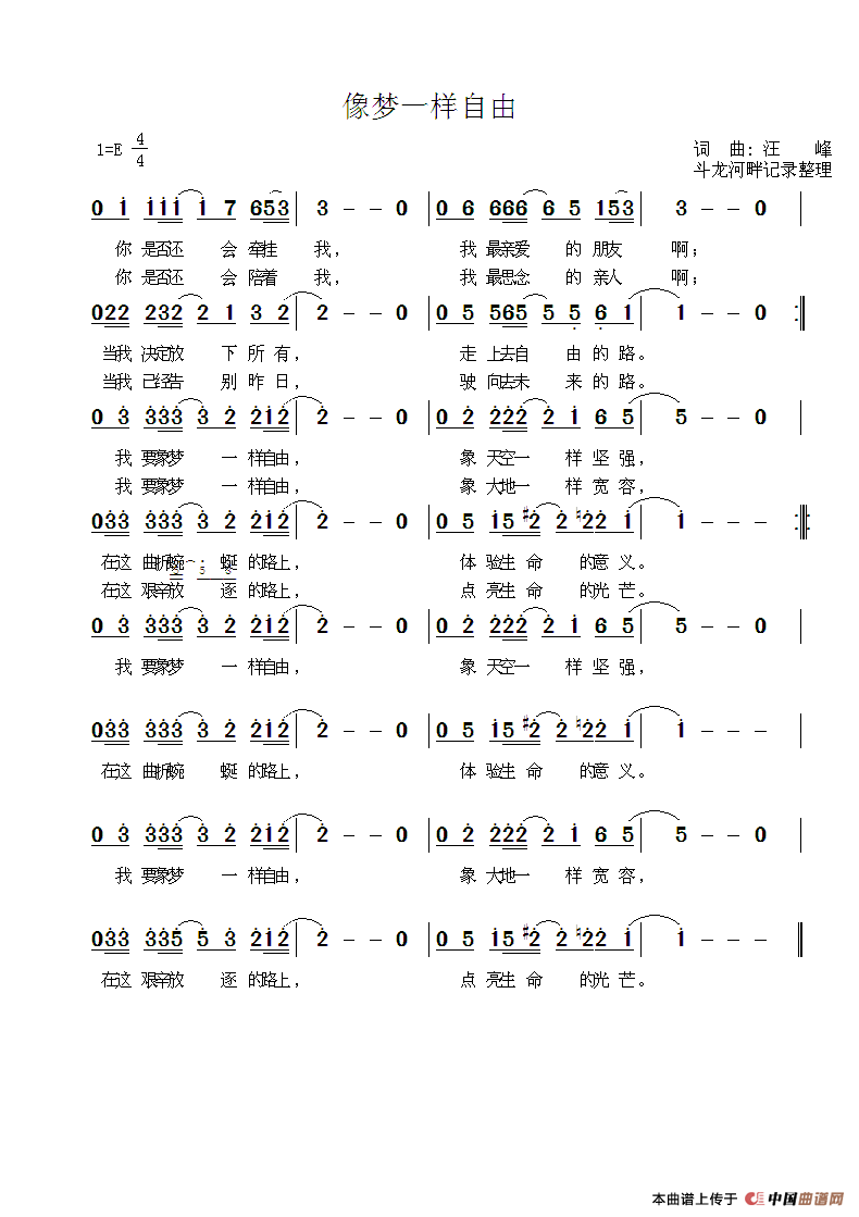 关于《像梦一样自由》曲谱的评论