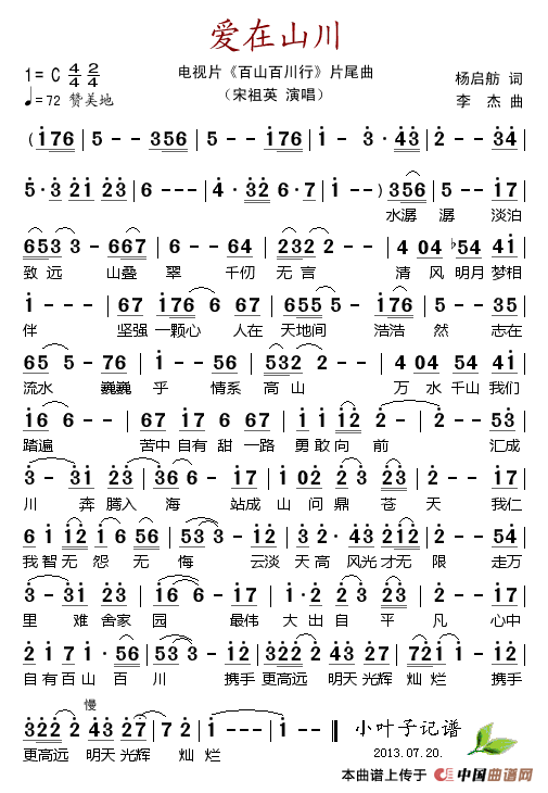 关于《爱在山川(电视片《百山百川行》片尾曲)》曲谱的评论