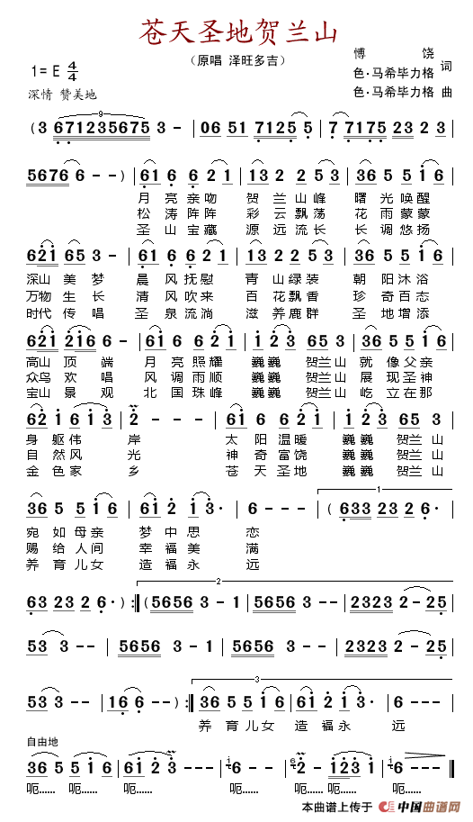 关于《苍天圣地贺兰山》曲谱的评论