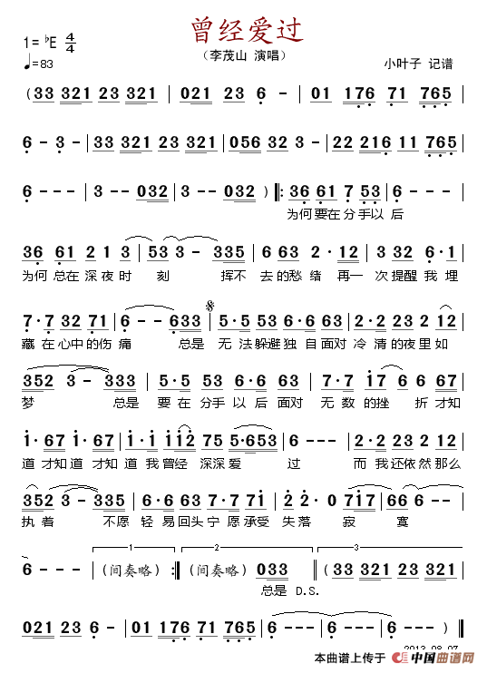 提示:在曲谱图片上单击右键,选择“图片另存为...”即可将曲谱保存到您的电脑中,打印时候可将图片插入到WORD中,调整合适大小打印即可。