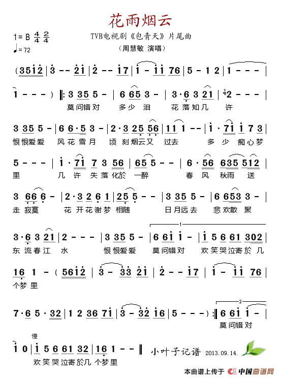 关于《花雨烟云(TVB电视剧《包青天》片尾曲》曲谱的评论