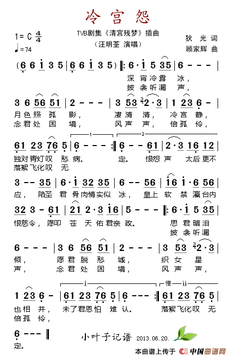 关于《冷宫怨(TVB剧集《清宫残梦》插曲)》曲谱的评论