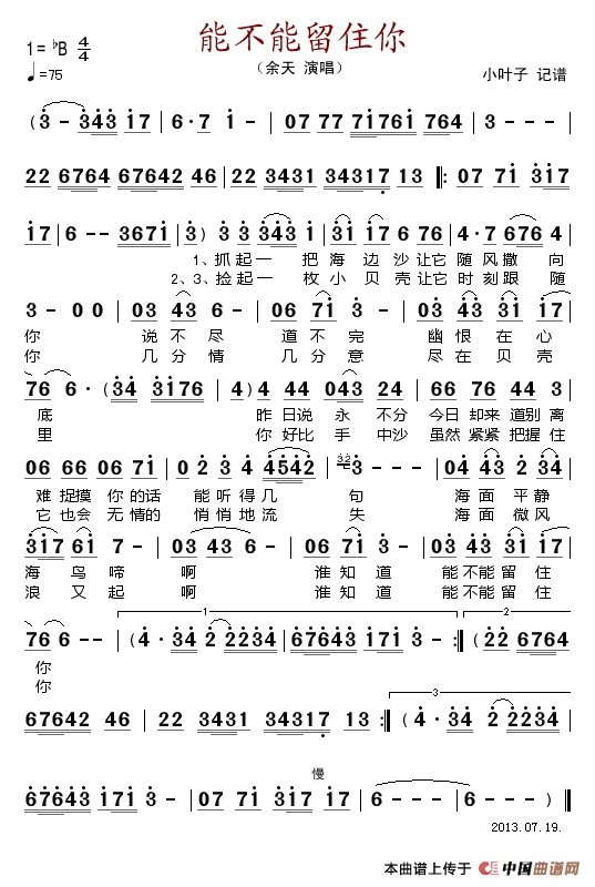 关于《能不能留住你》曲谱的评论
