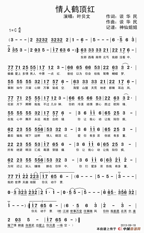 关于《情人鹤顶红》曲谱的评论