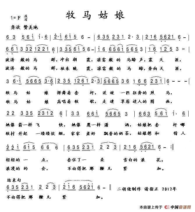 关于《牧马姑娘》曲谱的评论