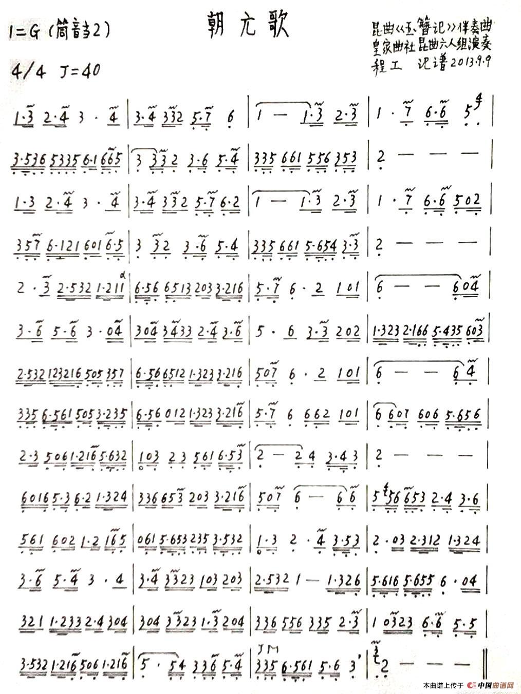 关于《朝元歌》曲谱的评论