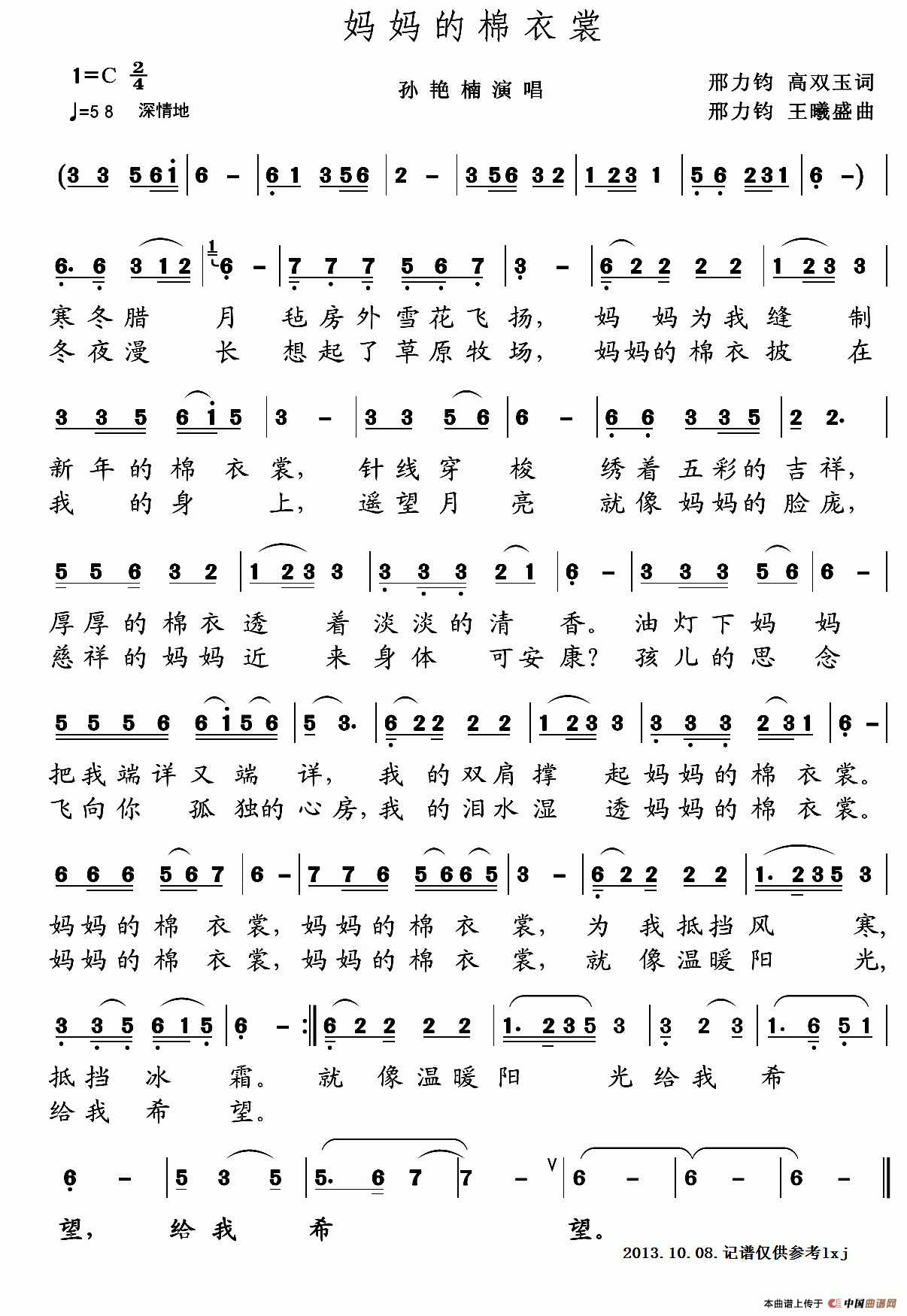 关于《妈妈的棉衣裳》曲谱的评论
