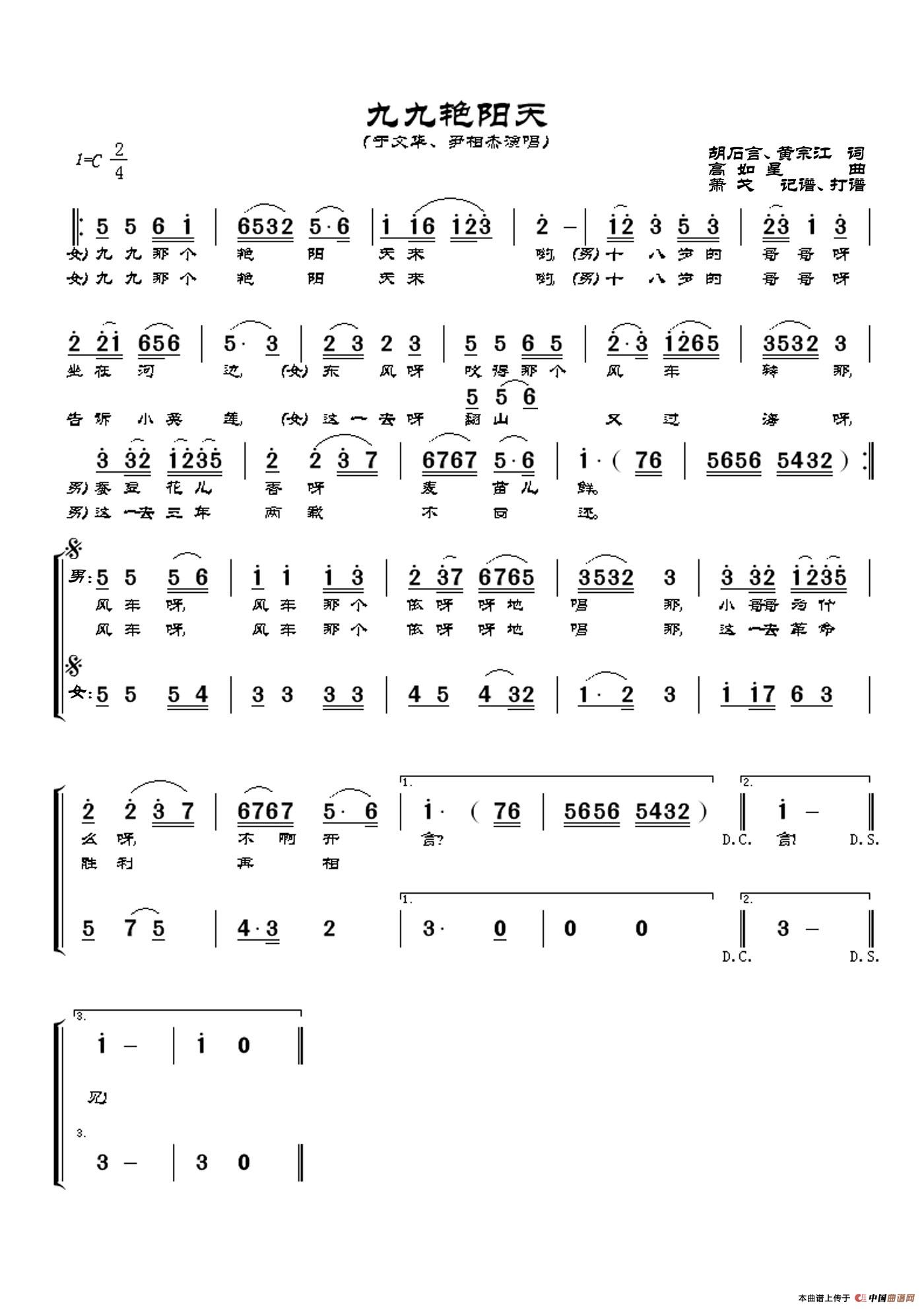 当前位置: 首页 谱友园地 谱友记谱 九九艳阳天(于文华、尹相杰演唱版)