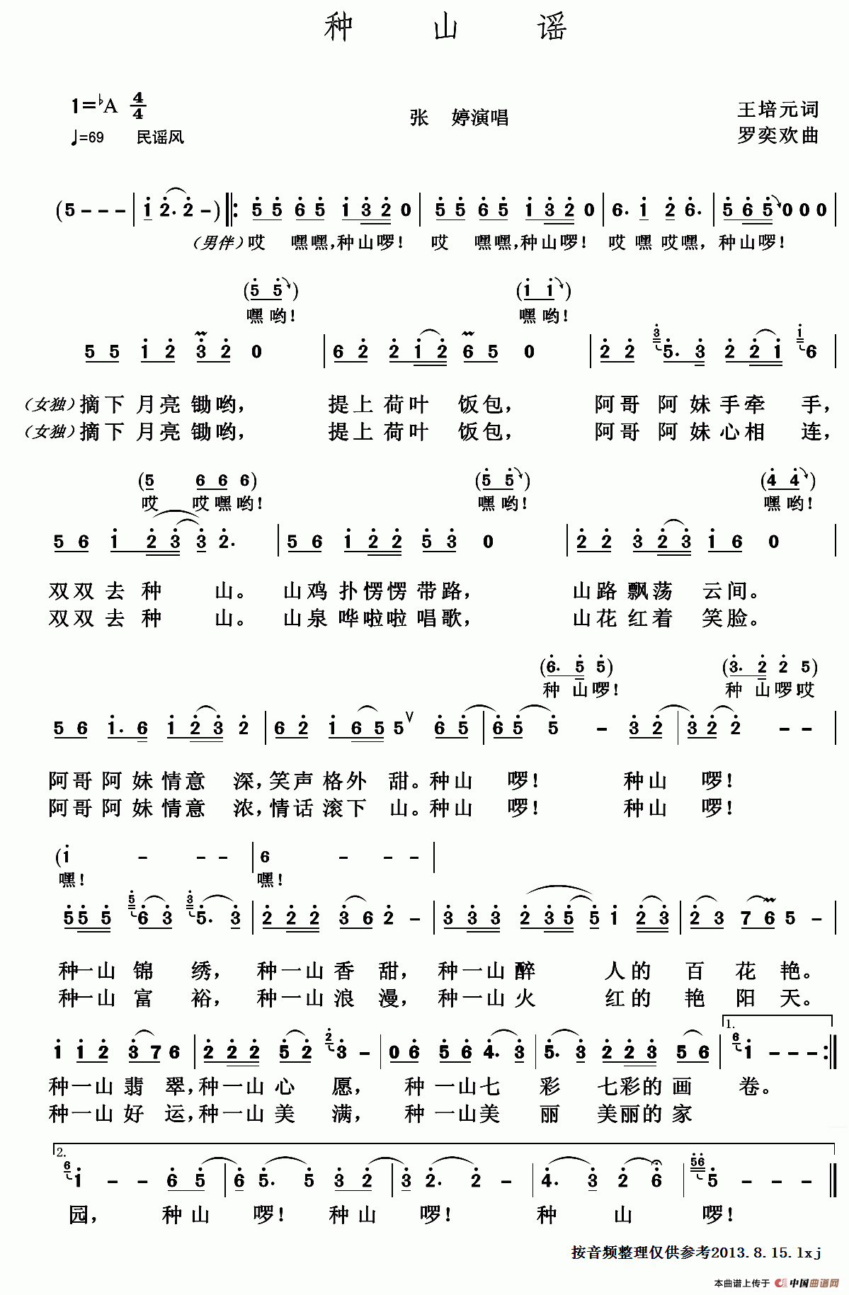 当前位置: 首页 谱友园地 谱友记谱 种山谣