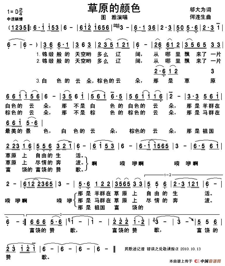 草原的颜色(邬大为词 何连生曲)(1)_原文件名:草原的颜色-图雅.jpg