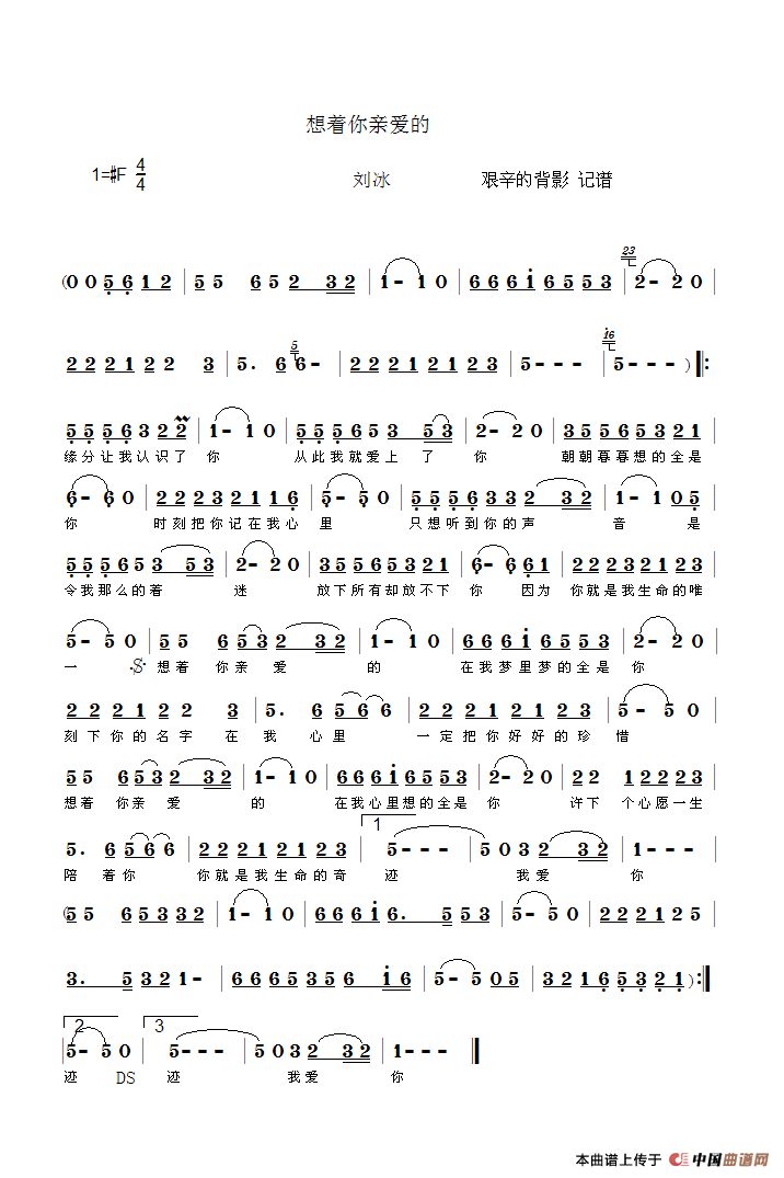 关于《想着你亲爱的》曲谱的评论