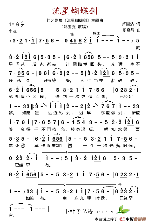 关于《流星蝴蝶剑(电视剧《流星蝴蝶剑》主题曲)》曲谱的评论
