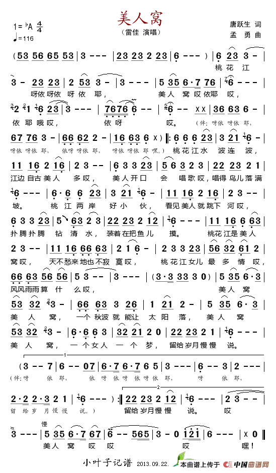 作词:唐跃生   作曲:孟勇   演唱(奏):雷佳   来源:小叶子记谱   上传:~金沙浪~   日期:2013-12-06   浏览次数: