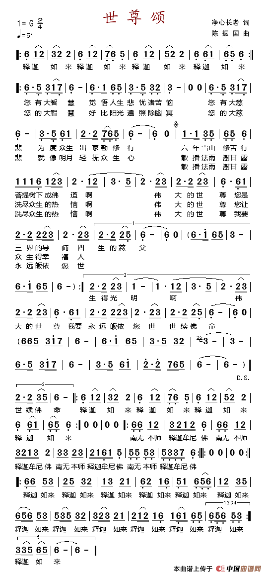 作词:静心长老 词 来源:小叶子记谱 上传:~金沙浪~