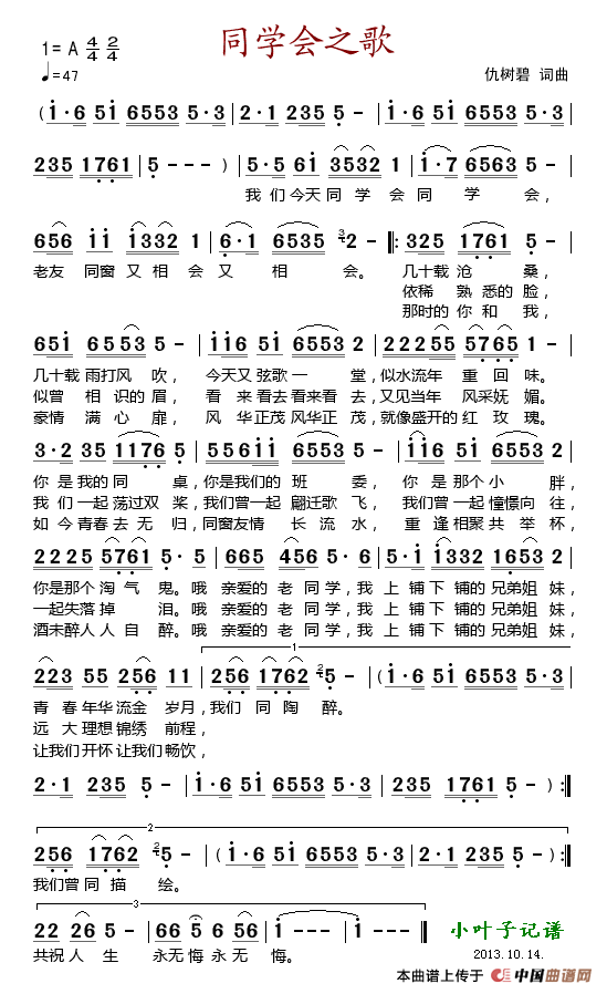 作词:仇树碧 作曲:仇树碧 来源:小叶子记谱 上传:~金沙浪~