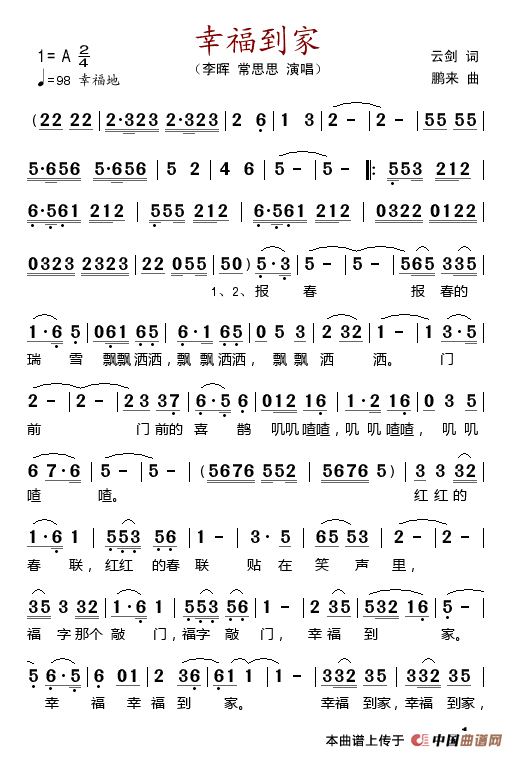 演唱(奏):李晖、常思思 来源:小叶子记谱 上传:~金沙浪~