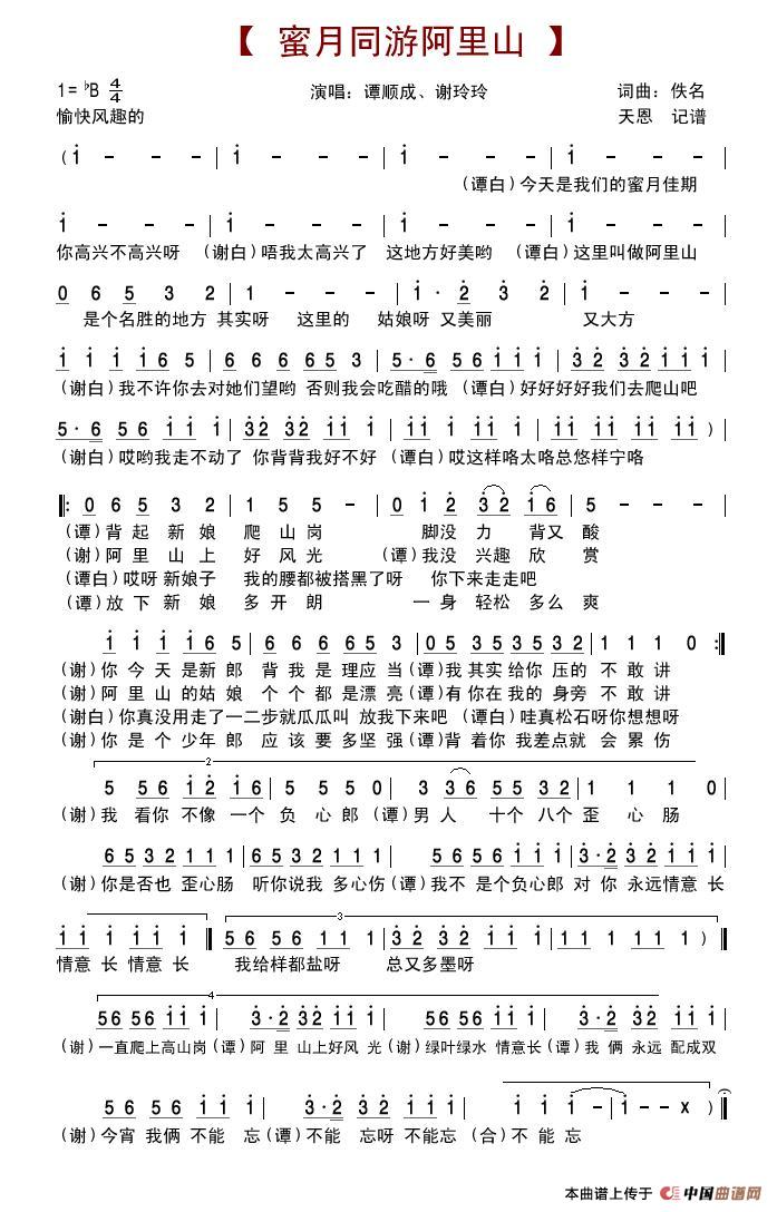 关于《蜜月同游阿里山》曲谱的评论