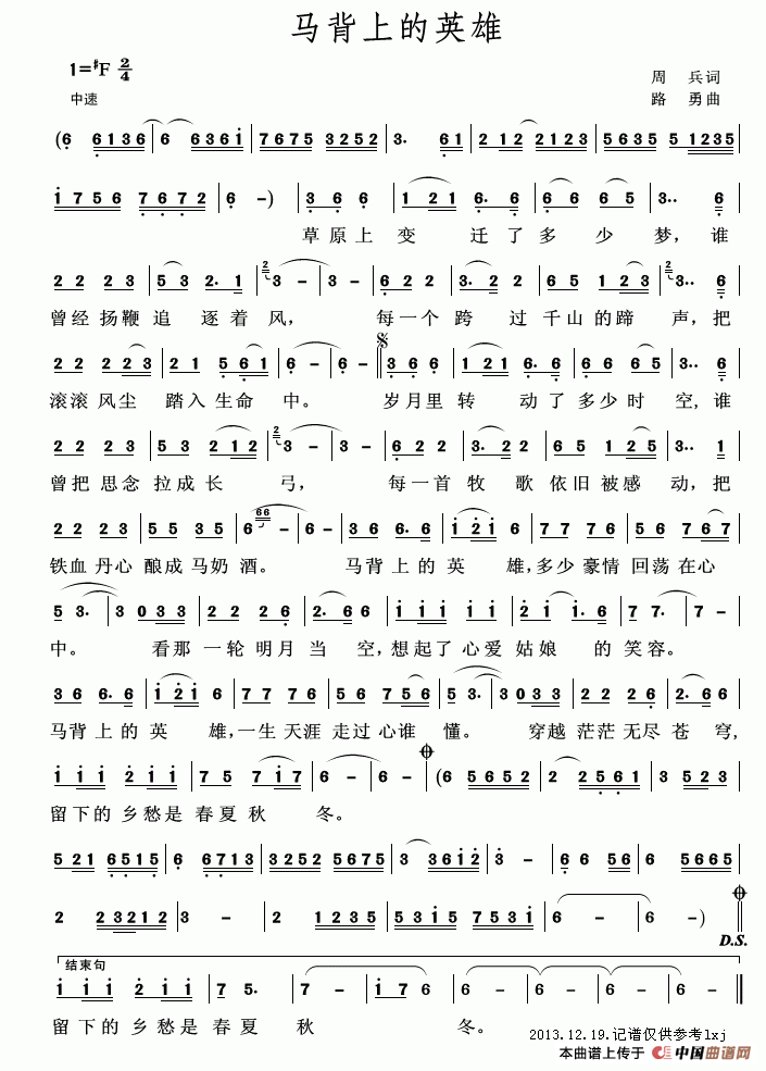 致谢:《中国曲谱网》衷心感谢记谱老师馈赠歌谱!