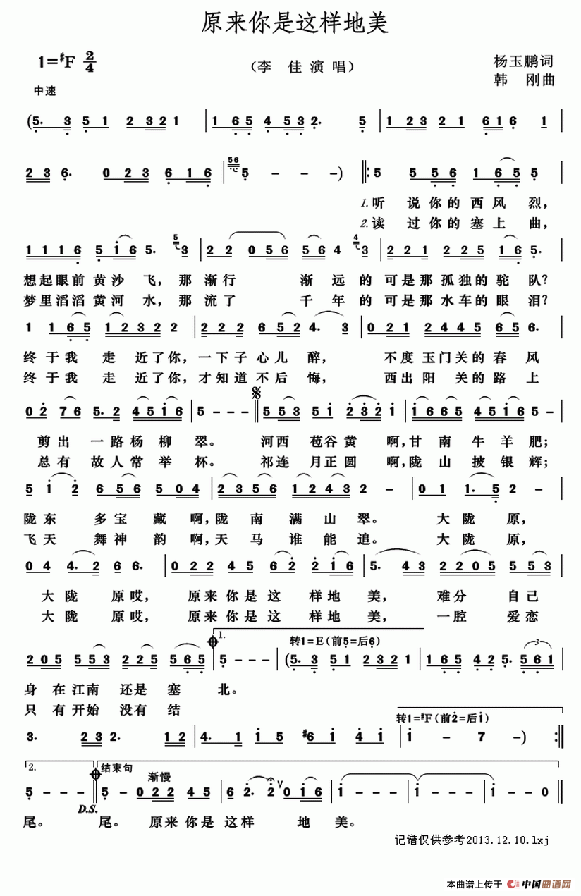 致谢:《中国曲谱网》衷心感谢记谱老师馈赠歌谱!