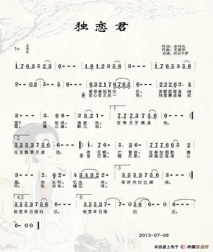 关于《独恋君》曲谱的评论