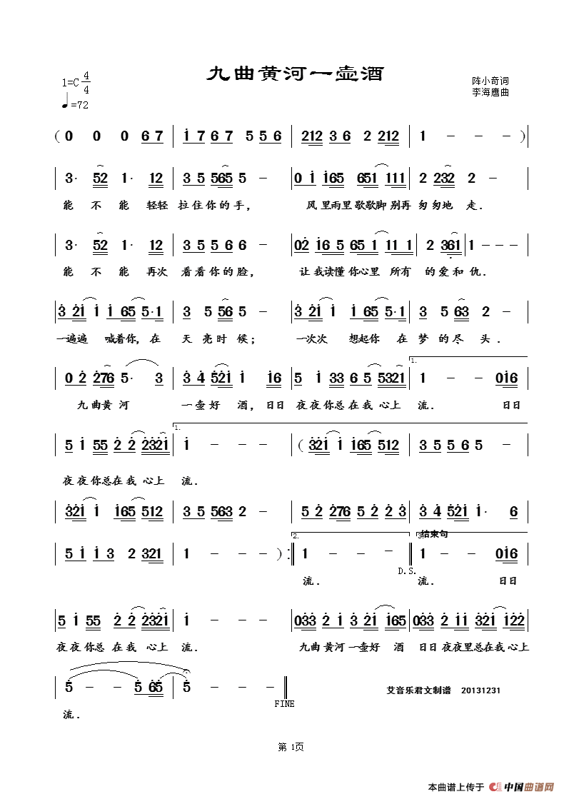 提示:在曲谱图片上单击右键,选择“图片另存为...”即可将曲谱保存到您的电脑中,打印时候可将图片插入到WORD中,调整合适大小打印即可。