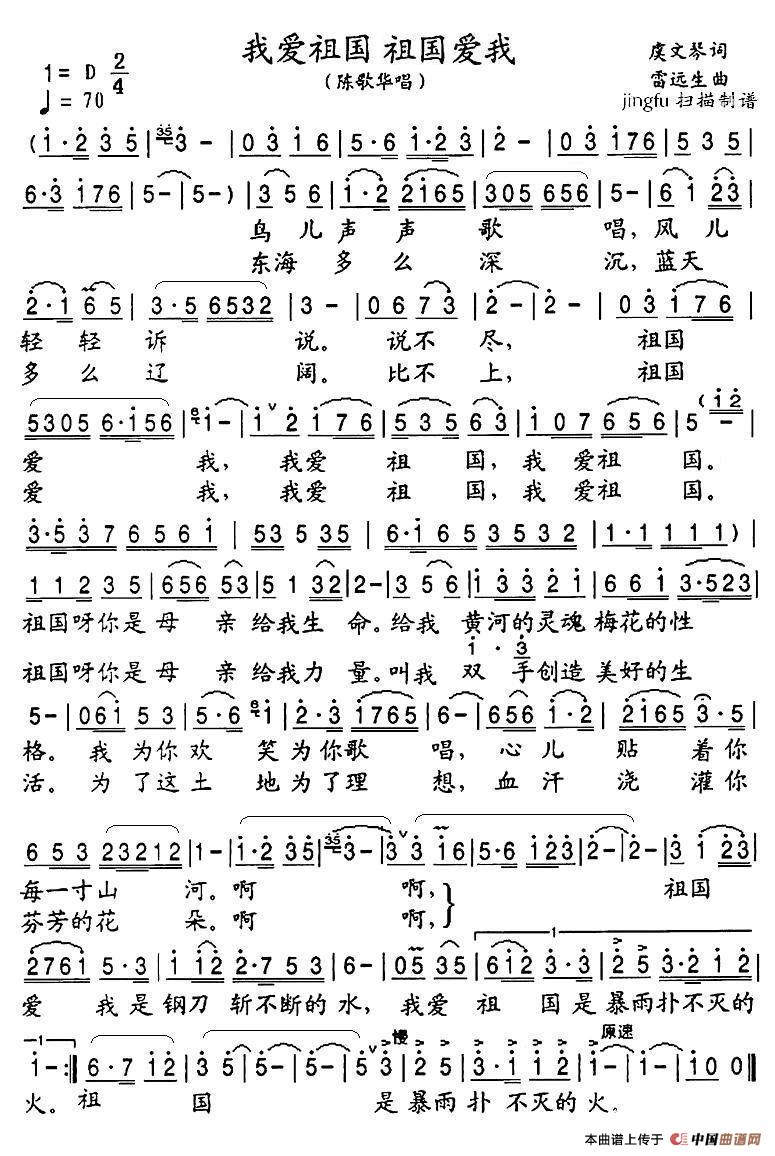 关于《我爱祖国 祖国爱我》曲谱的评论