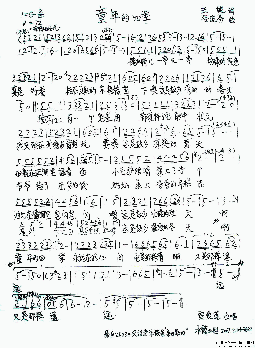 关于《童年的四季》曲谱的评论