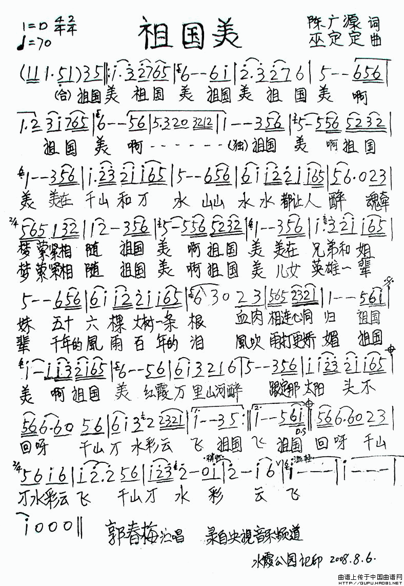 关于《祖国美》曲谱的评论