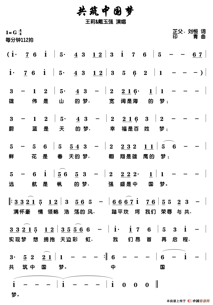 关于《共筑中国梦》曲谱的评论
