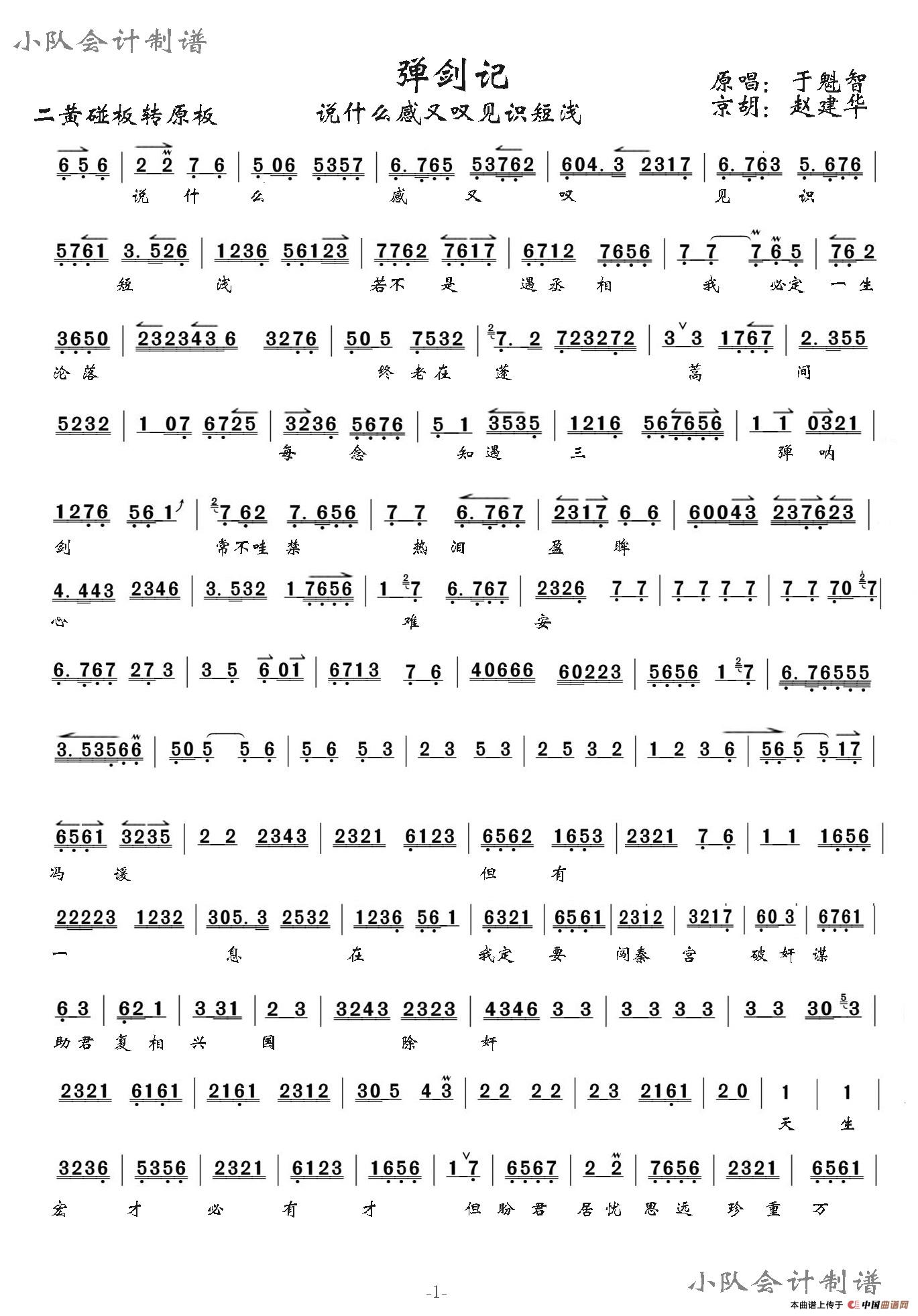 说什么感又叹见识短浅(京剧《弹剑记》选段、伴奏琴谱)