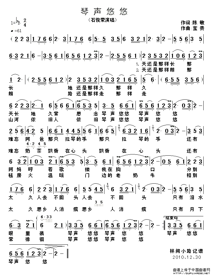 关于《琴声悠悠》曲谱的评论