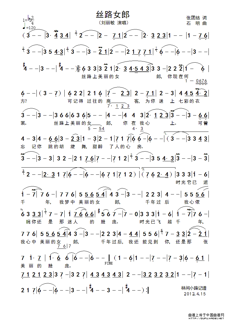 关于《丝路女郎》曲谱的评论