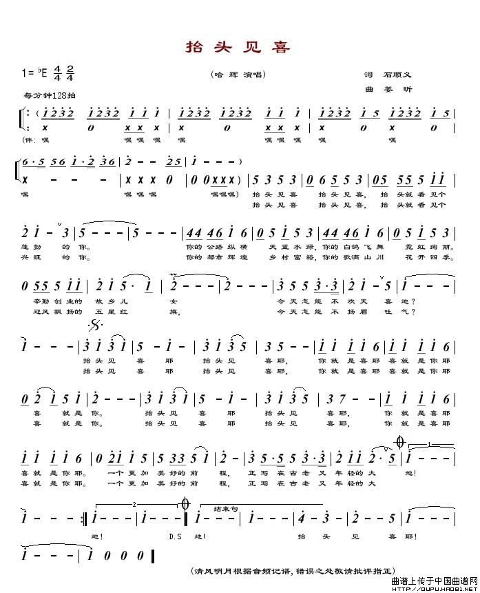 关于《抬头见喜》曲谱的评论