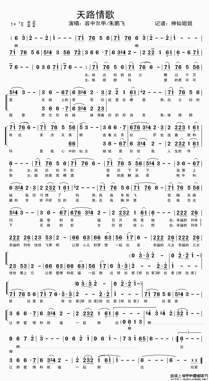 演唱(奏):容中尔甲、朱鹏飞 格式:简谱 来源:神仙姐姐记谱 上传:神仙姐姐