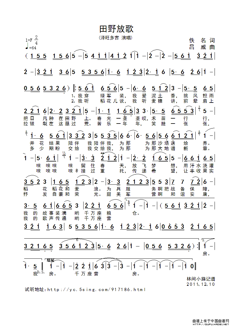 提示:在曲谱图片上单击右键,选择“图片另存为...”即可将曲谱保存到您的电脑中,打印时候可将图片插入到WORD中,调整合适大小打印即可。