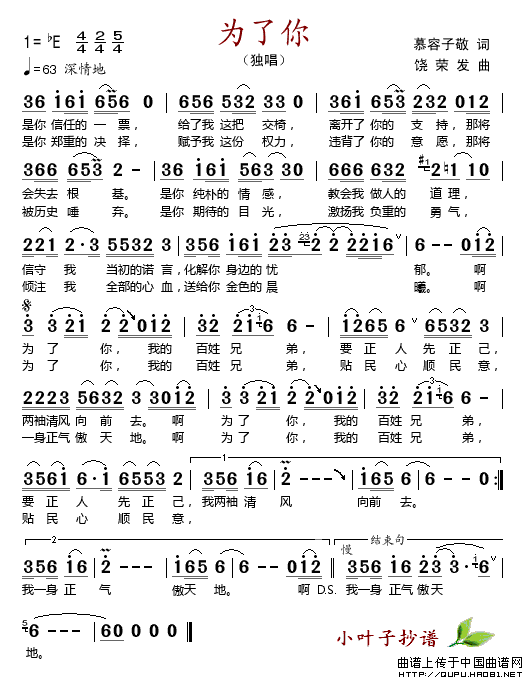 提示:在曲谱图片上单击右键,选择“图片另存为...”即可将曲谱保存到您的电脑中,打印时候可将图片插入到WORD中,调整合适大小打印即可。