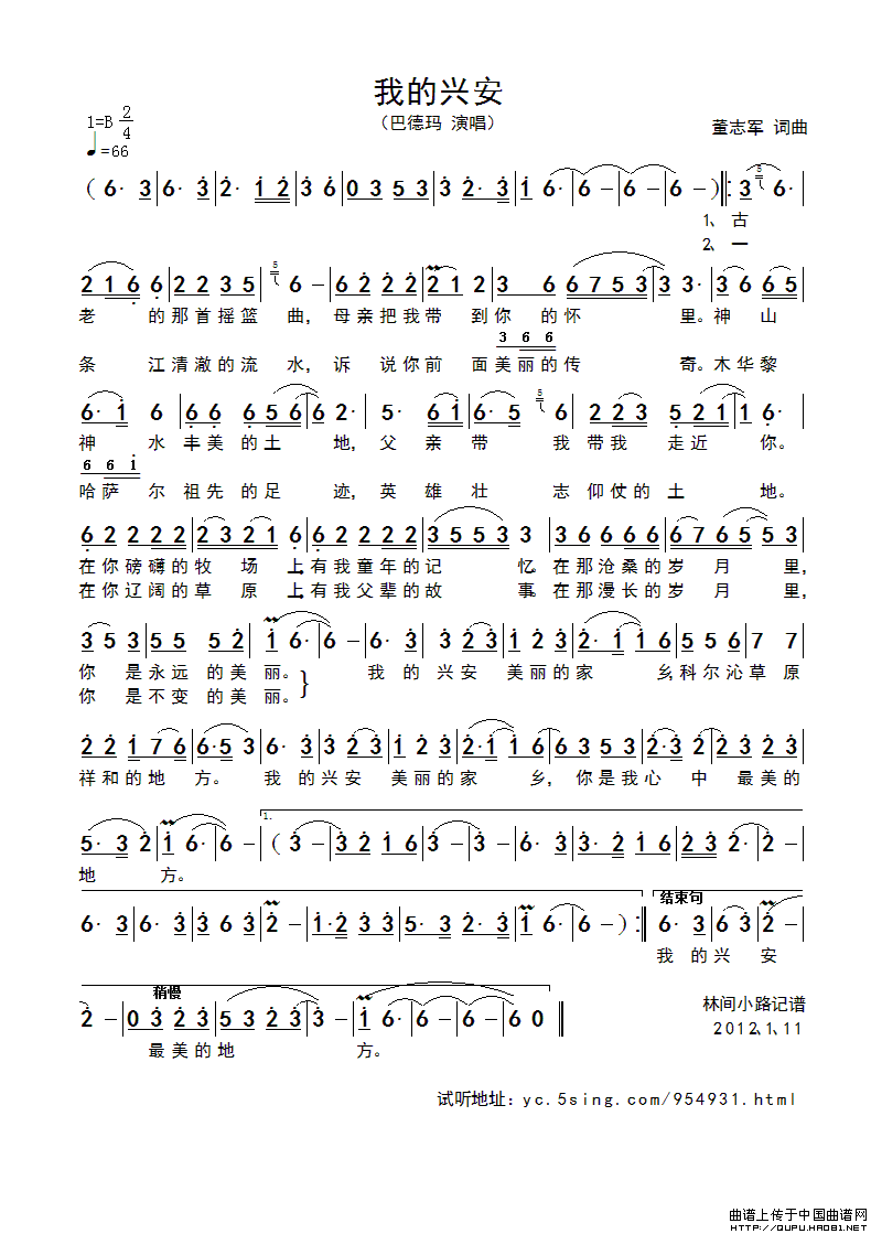 关于《我的兴安》曲谱的评论