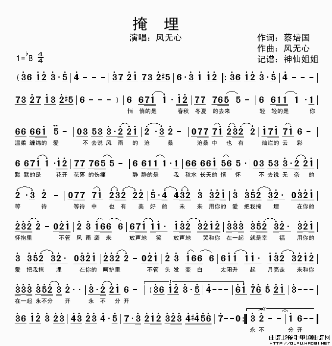 作词:蔡培国   作曲:风无心   演唱(奏):风无心   格式:简谱   来源:神仙姐姐记谱   上传:神仙姐姐   日期:2012-01-30   浏览次数: